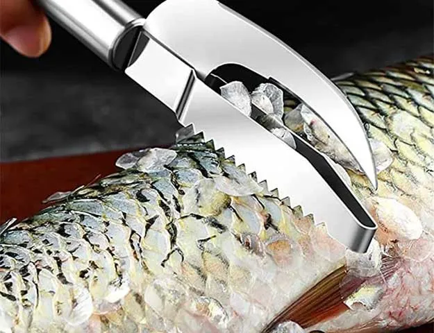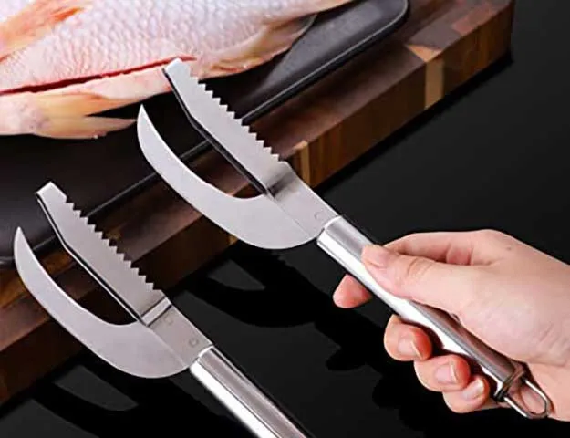Skrobak do łusek, nóż do otwierania, skrobak do patroszenia i czyszczenia wzdłuż głównej kości.